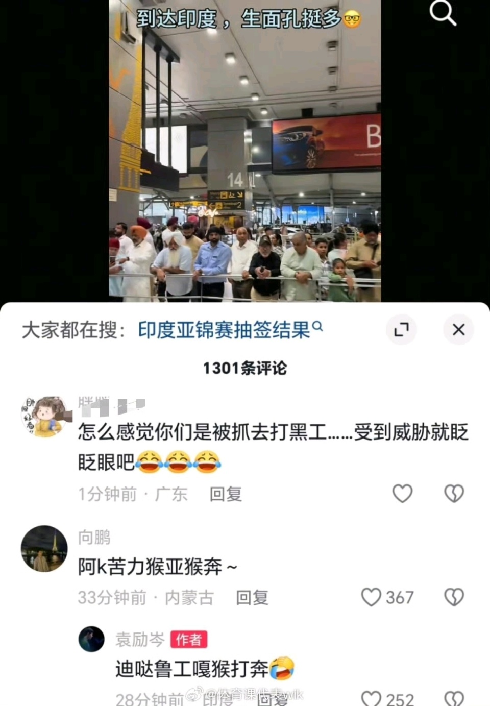 袁励岑也发了类似的视频,网友评论道:“你们是被抓来打黑工的吗?”向鹏留言道:“阿k苦力猴牙猴奔。”这是一首印度经典歌曲《Aankhein Khuli》,中文译名《女友嫁人了,新郎不是我》,向鹏借此自嘲是“苦力”呢。